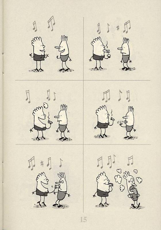 Il n’est pas nécessaire de mettre des contraintes à Lewis Trondheim pour qu’il pense autrement. C’est inné à sa façon de travailler. Ce n’est pas sa première expérimentation de la collection Patte de Mouche à l’Association. N’oublions pas qu’il fait parti des précurseurs de l’Oupabo. Donc on ne s’étonne même pas qu’il nous raconte une histoire sans mettre de texte. Beaucoup pense que l’on ne peut raconter des récits sans mot ou que c’est réservé à des enfants. Le bédéaste aime détromper les gens simplement et efficacement. Là en quelques petits dessins, il nous emmène dans des aventures plus ou moins ordinaires de la vie quotidienne. Une mère oblige son fils à manger du poisson et après il est malade. Des hommes pensent qu’il faut utiliser la force et la violence pour avoir une femme. Les gamins enfants roi qui contraignent les parents à faire ce qu’ils veulent. Et sans oublier le plus important, impossible de dire non à madame la mort. Même avec la meilleure volonté du monde, souvent on a pas le choix. Par contre, c’est important de refuser. Il faut avoir aussi son opinion bien que l’on n’a pas le pouvoir. La bonne humeur et l’ironie que l’on trouve souvent dans le travail du scénariste est ici presque absente. On est plus dans une sorte de fatalité car tout fini toujours mal. Faut-il en conclure qu’il faut se contenter de certaines choses? Surtout que la plupart des situations sont assez courantes et réalistes. Cela amène à la discussion avec vos proches. Et toi qu’est-ce que tu en penses de sa vision?