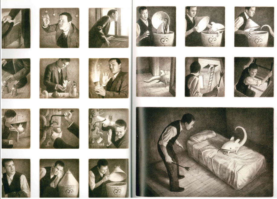Quelle surprise de taille en se plongeant dans cette bande dessinée. On est aussitôt happé par les dessins de l’Australien Shaun Tan. Et cela semble grandement mérité d’avoir gagné le Fauve d’or à Angoulême en 2008. Le trait fin, les motifs ultraprécis et net. Le bédéaste joue avec des nuances de sépia. L’univers se rapproche de la folie douce surréaliste. Les habitations ont des similitudes avec les nôtres. Mais lorsqu’on regarde mieux, on voit l’onirisme qui se dégage de ces incongruités improbables. Les animaux sont tous très étranges et bizarres. Et la technologie rétrofuturiste apporte un brin de rationalité. On est immergée dans un monde très singulier. La mise en page alterne les plan pour mieux nous émouvoir. On admire autant la succession des petits portraits que les pleines pages. Même l’invention de l’écriture intrigue.