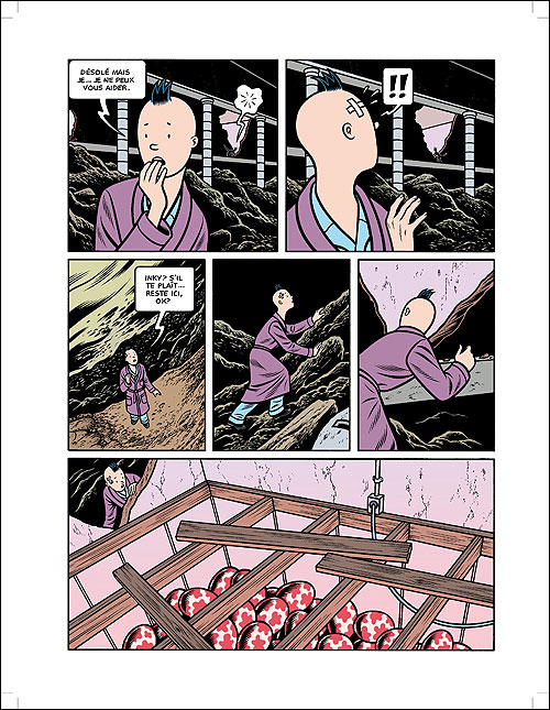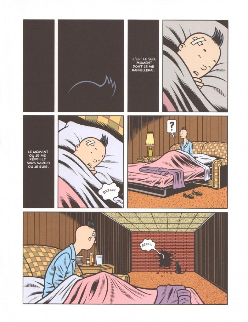 Tout commence avec un assemblage de cases de la même taille et avec des teintes différentes. Nous sommes dans une forme d’incitation graphique à s’ouvrir à de nouvelles choses. C’est à l’image de ce qui va nous être proposer à la suite. Charles Burns n’est pas un bédéaste ordinaire. Il s’affirme dans le comics underground qui a franchi les frontières. Le style n’est pas sans rappeler le travail d’Hergé, surtout Tintin, aussi bien dans la mise en page que le dessin. Donc les puristes seront rassuré, du moins dans un premier temps.