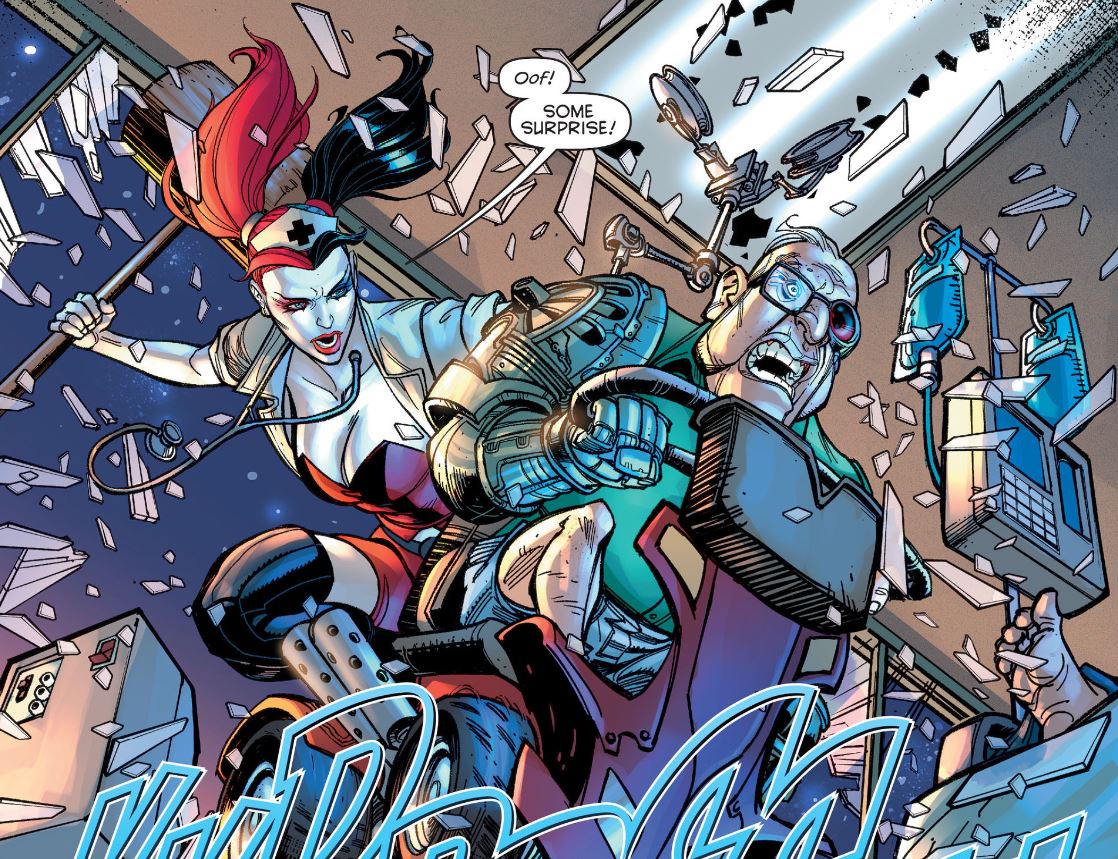Pour l’essentiel du récit, elle gère un immeuble qu’on lui a confié, tue d’anciens espions russes, assassinent tous ceux qui veulent la tuer, gérer une famille négligeant son sénior… On n’a pas vraiment le temps de s’ennuyer. Le bonus est la touche d’humour. C’est très amusant. D’ailleurs, cela se montre dès le début où plusieurs dessinateurs essaie de convaincre Harley d’être son créateur. Ame sensible s’abstenir. Que c’est bon d’avoir une héroïne confiante en elle, drôle, décontractée, créative, généreuse… Elle sauve des animaux d’un refuge qui allaient être anesthésié. On y voit un adorable bouledogue français. Pour gérer les déjections, elle commande un trébuchet moderne pour envoyer la merde ailleurs et loin. C’est l’occasion même de rendre des comptes à DC qui projette de nouveaux projets. A ce moment là, des gros paquets de merde recouvrent la façade de l’entreprise. Aucun doute que certains vont se sentir ciblé. Le lecteur lambda trouve le clin d’oeil brillant et culotté. Le dessin est précis, léché et représentatif. Les couleurs en aplat un peu sombre permet de mieux nous concentrer sur le dessin. Tout est très dynamique et c’est un vrai plaisir à lire. Rien de telle pour vouloir poursuivre l’aventure.