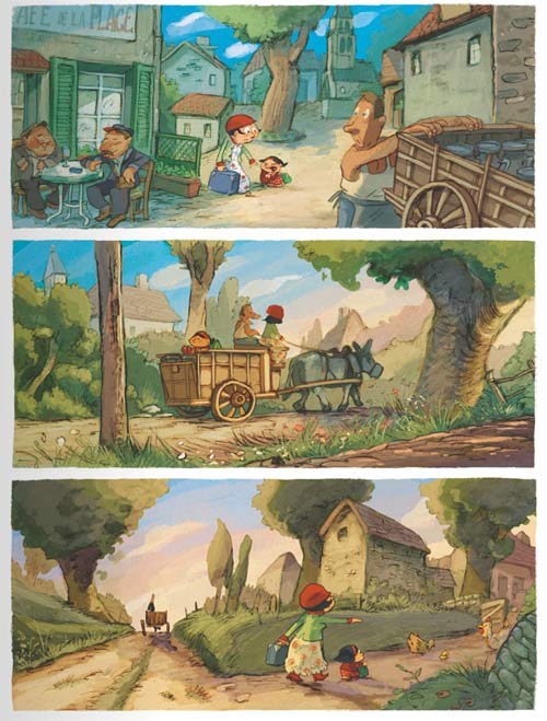 Marinette prend des responsabilités assez vite et c’est compliqué. Une réflexion blessante et elle se sent mal, pleure. Un jour le mot de trop la pousse à s’enfuir. Ce premier tome s’achève là dessus. Avant de retrouver notre Mamette se baladant avec une copine inlassablement mécontente. Impossible de ne pas être sous le charme de cette naïveté si honnête. La vie à la ferme est difficile. On élève des lapins pour les manger. Les poules pour récupérer leurs oeufs. Les chèvres pour leur lait. Et tellement d’autres choses qui demande de prendre du temps et de l’implication corporelle. De nombreuses grands-mères ont raconté des récits à leurs petits-enfants. L’école n’est pas utile pour s’occuper des animaux, contrairement à la cuisine, le jardinage, la couture… et trouver un mari. Une vision du monde réaliste d’une époque pas si lointaine. Donc on pourrait dire que cette bd peut s’offrir autant à des enfants que des grands-parents. Et en plus, l’ouvrage se prête facilement entre génération pour inciter à la discussion.