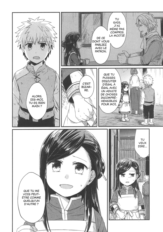 Maintenant que le contrat a été signé, il faut trouver la méthode pour fabriquer du papier. Il faut penser à tout, aussi bien aux matériaux qu’aux machines. Une étape assez difficile surtout quand on doit juste faire appel à ses souvenirs d’un autre temps. Mais il en faudrait plus pour l’empêcher d’aboutir à son projet et d’écrire des histoires. Maïn est dans le corps d’une enfant fragile, elle doit alors s’adapter à ces compétences. Heureusement qu’elle peut compter sur Lutz, son partenaire, pour les travaux de force, la connaissance de la nature, son soutien psychologique.. A eux deux, ils vont arriver à faire le nécessaire. Grâce à de nombreuses expérimentations, des feuilles blanches commencent à poindre le bout de leur nez. Un marché s’annonce des plus florissants surtout que les utilisations restent assez large et rencontrera sans souci du public. En plus, la jeune fille a un autre produit à vendre qui devrait aussi avoir de la demande. Il faut juste avoir l’agrément du responsable qui va céder au charme des enfants.