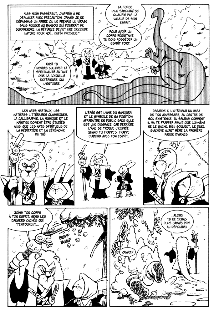 L’histoire d’Usagi Yojimbo, le lapin samouraï, débute dans le premier tome juste après le massacre d’Adachigahara, la bataille qui le transforma en Ronin. Dans ce deuxième tome, le dessinateur Stan Sakai nous ramène à l’enfance et l’adolescence d’Usagi. On y découvre l’éducation et la formation du samouraï aux longues oreilles.