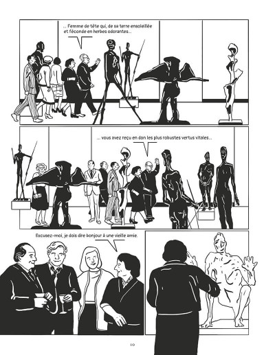 Jusqu’au bout, elle a pensé sculptrice, gravure, peinture… Le noir et blanc subliment les créations et permettent de jouer avec la profondeur, les perspectives, les ombres… On se laisse porter avec plaisir de la première à la dernière page. En plus, on a très envie de savoir où est-ce que l’on peut voir son travail en vrai.