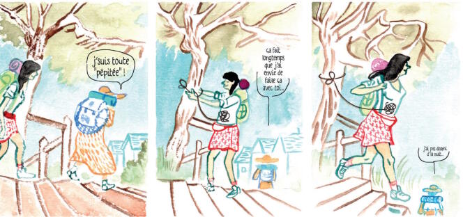La bande dessinée, n’est pas seulement suivre la vie d’une jeune femme. Laëtitia Rouxel en profite pour aborder de très nombreux sujets. La question écologique est prégnante. Au début, c’était juste une perte d’espoir dans l’avenir. « Tu sais, Popeye, ça fait vingt ans que j’milite, mais là je crois qu’on est foutus! On va tous griller, mais avant tout choisir entre le cancer, la PMA, la famine, la noyade… ». L’interlocuteur lui remonte le moral en disant qu’il est passé aussi par cet état d’esprit. Depuis qu’il a découvert la permaculture et lu quelques ouvrages cela a tout changé. Une démarche similaire se fait également pour le personnage principal. Elle décide de déployer un jardin-forêt pour son fils, Adam. Est-ce vraiment utile les références bibliques pour évoquer le renouveau? L’auto-fiction est certes en grande partie romancée, elle montre un autre choix de vie. Et elle le fait seule avec un bébé. Elle ne pourra pas sauver la planète toute seule, néanmoins elle décide de faire quelque chose et de concret. Tout semble un peu trop beau puisque tout réussi. N’est-ce pas trop idyllique? Pourtant, elle a abordé un thème similaire dans sa précédente bande dessinée : « Deux mains dans la terre. Vers une transition écologique » écrit par Jacques Caplat. Le bilan est plus nuancé voir négatif. Faut-il engendrer une famille pour penser autrement? Graphiquement, elle appose ici des aquarelles qui apportent beaucoup de légèreté, de délicatesse et de douceur. On connaît la précision de son trait. Elle préfère ici mettre plus l’aspect enfantin pour rendre le récit plus authentique. L’environnement est gentil et généreux. La question du changement climatique pointe le bout de son nez en fin d’album. Un problème sur lequel, elle ne s’étend pas. Etrange de clôturer en partie sur ça. Faut-il y voir que la nature trouvera la bonne solution pour s’équilibrer? Et que l’humain l’y aidera un peu aussi quand même?