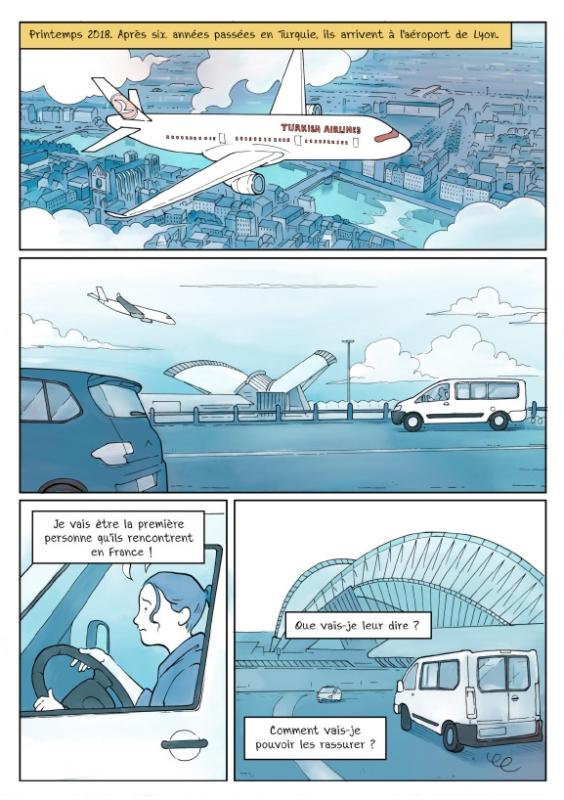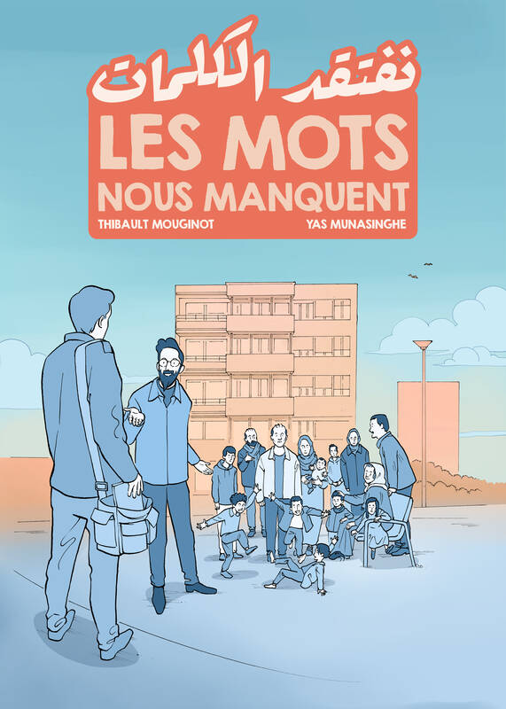 Quand on arrive à la fin de l’ouvrage, on reste sur sa faim. On aurait aimer savoir comment ils sont arrivés à s’intégrer sur le long terme, les ouvertures possibles grâce à la maîtrise de la langue, le lien avec les locaux… On a juste le début de l’aventure et c’est tout. Surtout que l’on apprend que la bande dessinée fait parti d’un projet à l’initiative d’un dessinateur. Thibault Mouginot avait déjà expérimenté cette façon de travailler et cela a toujours été enrichissant. Il propose un dessin assez arrondi, précis et très chaleureux. Pour distinguer le contexte de la bd et le quotidien des nouveaux arrivants, l’une est bleu et l’autre jaune. Le bédéaste n’oublie pas de mettre discrètement la haine ordinaire. Que cela soit des gamins qui accusent les autres de ne pas vouloir s’insérer et qui ne font rien pour les inclure à leur bande. Ou des vieilles qui prend peur car des hommes se retrouvent en bas d’un immeuble pour discuter de la journée en les accusant d’inaction. Nous passerons le reste car tout à chacun est habitué à entendre ce racisme banalisé par les médias. Cette disparité montre l’étendue des différentes humanités nationales. L’espoir d’un monde meilleur nous est proposé.