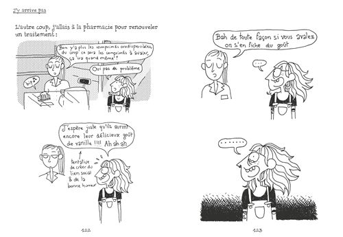 Les doutes, l’incertitude, la peur est commun à tout à chacun. Après, elle s’interroge sur sa situation de queer et de l’expliquer, le vivre et le partager. Elle est sans cesse en construction. Et quand les règles arrivent les émotions fortes débarquent. Comme c’est un fait récurrent, on a le droit d’avoir une grande diversité dans les aventures. Là également, les lectrices pourront s’identifier. Douleurs, tristesse, déprime deviennent des conjointes fidèles, peut-être trop. Des tranches de vie réalistes parfois amusantes.