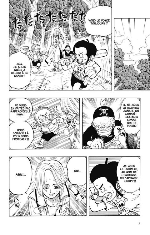 Le personnage d’Usopp prend plus de place malgré sa grande gueule pour faire l’intéressant. CE n’est pas un bon combattant. Son pouvoir se résume à sa gentillesse? Néanmoins, ils partagent cela dans l’équipe. Il manque une compétence non négligeable au sein de la team. Comme à l’horizon, on voit un nouveau bateau donc cela signifie une nouvelle aventure.