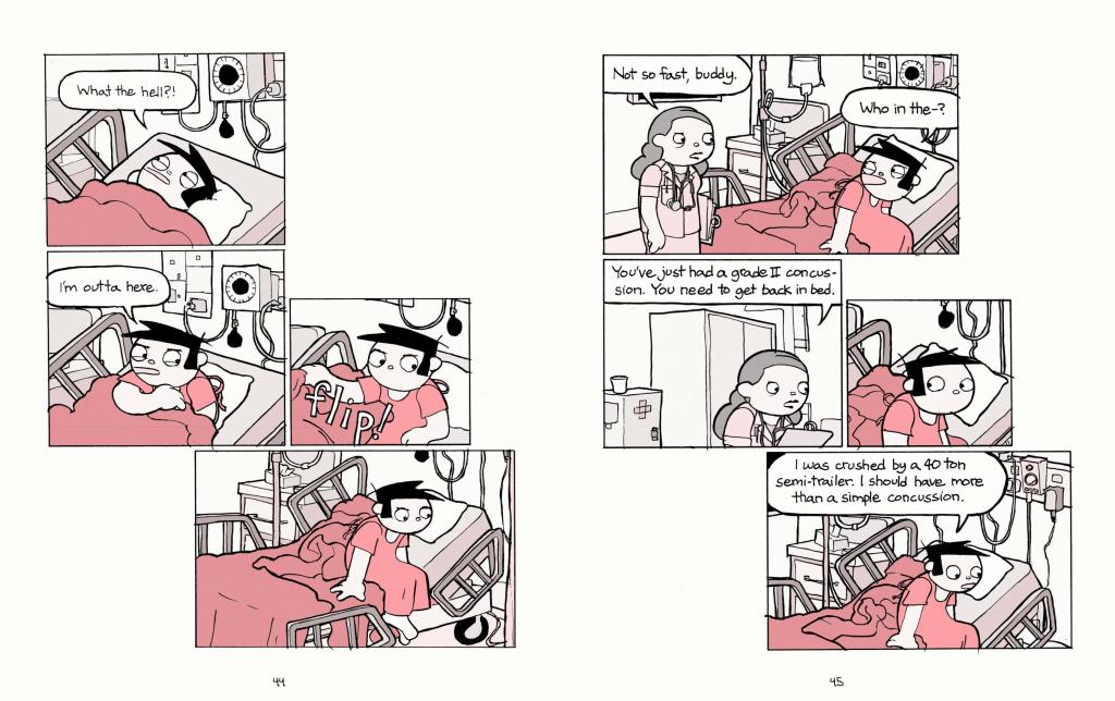 Jason Shiga prévient en préface que certaines scènes peuvent choquer le jeune public. Les enfants passés votre chemin. « Si vous êtes un enfant, merci de reposer ce livre calmement et de vous en aller. Les personnages disent des gros mots réservées aux adultes. Par exemple, le meurtre, les relations sexuelles homme-chameau ou l’usage de stupéfiants. Et passez votre bac d’abord. Mais si vous êtes un adulte, oh là là! laissez-moi vous dire que cette histoire va vous faire halluciner! Vous êtes parti pour un de ces kifs! » .