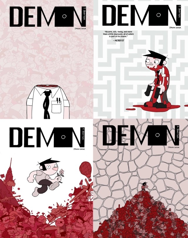 Dans le doute, Jimmy Yee décide alors de se suicider pour prendre le corps de la personne la plus proche de lui. On appréciera la scène de fuite de la prison. Jason Shiga possède un humour noir d’une grande finesse. Le héros arrive a s’enfuir en tuant tous les prisonniers et quelques flics au passage. Mais le premier criminel était nu, avec un bout de papier toilette coincé dans l’anus. Pour le durcir, il fallait l’enduire de sperme. Quand il faut mettre la main à la patte, il y va. C’est vraiment amusant et déroutant. On ne qu’applaudir d’avoir le juste équilibre en mélangeant « Un jour sans fin » et la vie d’un démon immortel. Improbable et tellement amusant. Impossible de ne pas adhérer à cette douce folie qui se compose de quatre tomes. L’ensemble est réalisé dans un style graphique minimaliste et tout en rondeur permettant de mettre en avant l’histoire. On reconnaît son style qui va à l’essentiel sans trop de détail et pleins de couleurs. Et avec une mise en page dynamique et originale. Pas le choix de poursuivre l’aventure. Il avoue avoir réalisé un vieux rêve : « celui de franchir les limites de la décadence et du bon goût à toutes les pages. » On ne peut que lui donner raison.