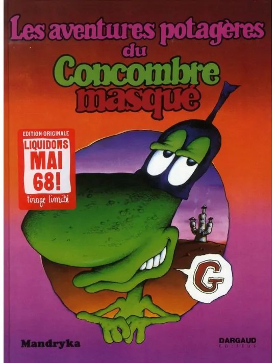 Se replonger dans « Les aventures potagères du concombre masqué » est une vraie aventure. C’est surtout un voyage dans le temps. Nikita Mandryka a entamé sa carrière en 1964 dans « Vaillant », revue pour laquelle il crée « Le Concombre Masqué ». D’ailleurs, on l’a surnommé le Seul Héros 100% Végétal donc 100% Sain. Progressivement, on retrouve le héros dans « Pilote », « L’Echo des Savanes » et ‘ »Spirou ». On sent un esprit de rébellion, de remise en cause du système et de folie douce. Le bédéaste possède une grande liberté dans son graphisme et aussi dans ses expressions. D’ailleurs, on peut faire des parallèles avec le travail de Claire Bretécher et Fred et même Gotlib.