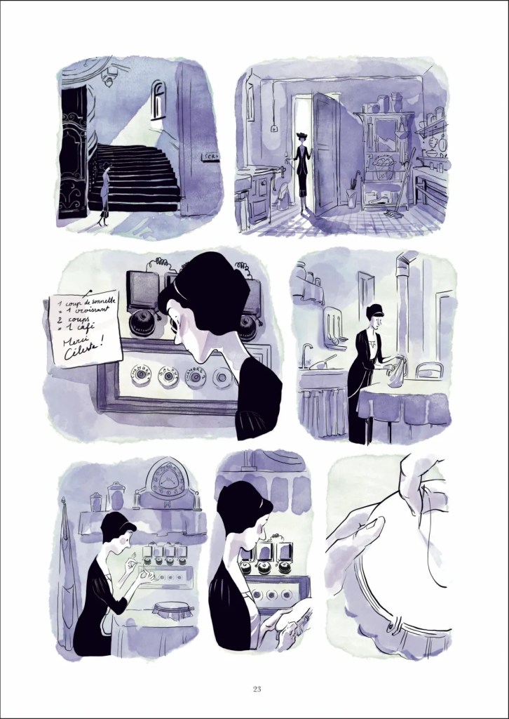 Grâce à de multiples sources, Chloé Cruchaudet tisse le portrait dévoué et passionné de Céleste Albaret, gouvernante et parfois secrétaire de Marcel Proust jusqu’à sa mort, en 1922. Elle révèle leur lien, l’écrivain sous toutes ses aspérités, l’atmosphère d’une époque et les dessous de la construction d’une fiction. Monde réel et monde fantomatique s’entremêlent pour nourrir ce sublime diptyque.
