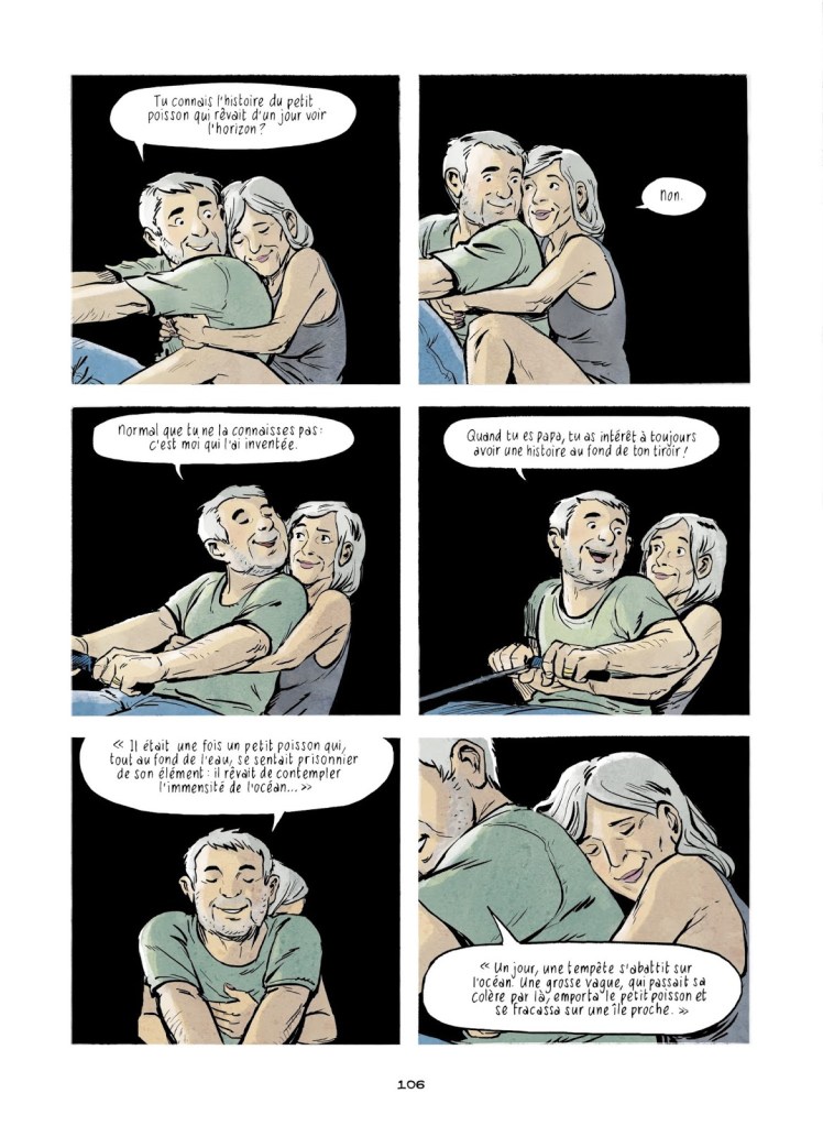 Aimée de Jongh sublime l’histoire. Les dessins sont d’une grande précision et aussi d’une grande douceur. Elle s’amuse à jouer avec les plans sur des détails ou des morceaux de corps. Magnifique deux doubles pages sur la scène où le couple fait l’amour. Le graphisme est proche du croquis ce qui tranche avec le reste. C’est étonnant et d’un raccord très précis avec le scénario. Un duo efficace qui montre que la collaboration entre des talents ne peut donner que des albums singuliers et marquants. Une lecture qui ne s’oublie pas si vite et nous touche. L’espoir et l’amour sont toujours possibles à tout moment de notre vie.