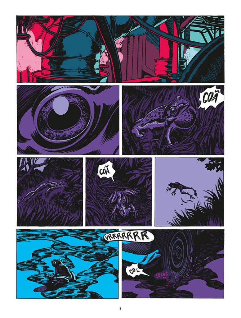 Le graphisme est très standard et très lisible. Les couleurs par contre elle montre de l’audace. On a des mélanges de teintes utilisées avec beaucoup d’ingéniosité qui oscille avec flashy ainsi que dense et sombre. La mise en page est dynamique avec des changements plans permettant de créer du s’immerger dedans. Tout a été très bien construit et sans rien laisser de côté. On sent qu’il y a eu un vrai travail et une collaboration bienveillante. Donc il va falloir tout relire dans l’ordre et jusqu’au bout.