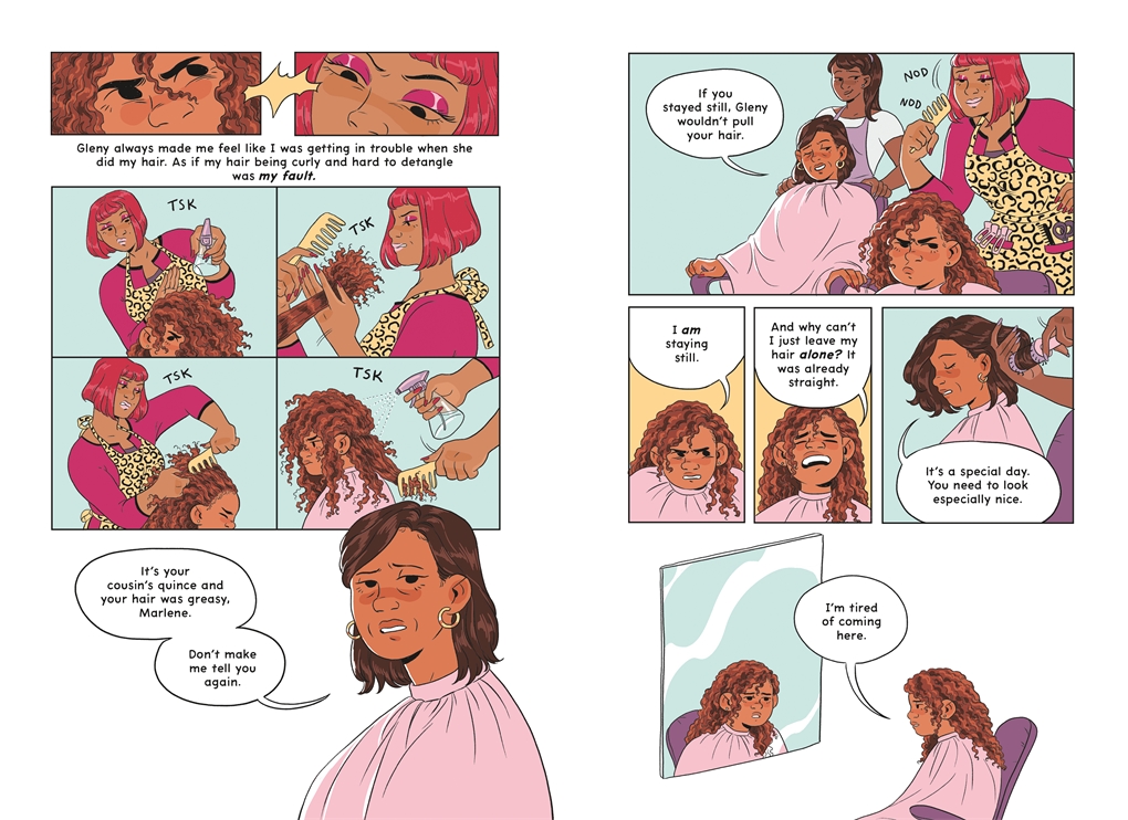 Marlène aime 3 choses : les livres, sa tante Ruby et passer du temps avec sa meilleure amie. Ce qu’elle déteste par-dessus tout : le salon de coiffure où sa mère la traîne de force tous les week-ends. Pour être » présentable « , adieu les frisottis, bonjour les cheveux lisses. Mais un vent de rébellion est en marche et Marlène a décidé qu’il était temps de porter fièrement sa chevelure. Alors, avec détermination (et parfois maladresse), elle tente une révolution !