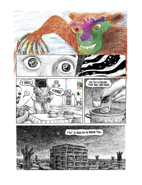 Kandji est plein de rêves. Il tente de s’accrocher pour mettre des dessins et des couleurs partout. Pour ça, il faut s’adapter tant bien que mal dans un contexte de fort incertitude.
