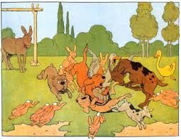 Parfois, il est utile de se replonger dans les bandes dessinées qui ont bercé la jeunesse de bien des enfants. On voit ainsi que la mentalité en 1934 est bien lointaine de celle de nos jours. Les dessins de Benjamin Rabier sont d’une grande précision. On reconnaît assez bien tous les animaux de la ferme. Ce n’est pas un hasard si les vaches ressemblent au logo de la marque de la Vache qui rit. C’est le dessinateur qui a créé l’image de marque. La bd est à destination des enfants et pour les faire rire.