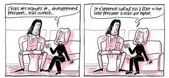 Un contrepied flagrant aux ouvrages de développement personnel. D’habitude, on vend de l’écoute, de la bienveillance, du partage… Et là, on prône le narcissisme, l’égocentrisme et la violence. Etonnamment, cela prend. On ne s’étonne qu’à moitié car il n’est pas si difficile de rencontrer des gens qui prône le moi avant tout facilement, en dehors des adolescents bien entendu. Que serait le monde si tout à chacun revendiquait son égo avant tout? Aucun doute que la violence deviendrait chose courante. Alors autant essayer d’en rire. L’absurde est au rendez-vous. Le visage du personnage principal masculin est gratiné. On voit tout de suite la médiocrité qui émerge de lui.