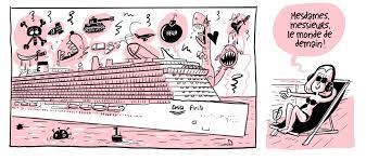 Le style graphique est assez dynamique et proche de la caricature. On est dorénavant habitué à cette identité graphique que l’on trouve dans la bande dessinée plus moderne et féminine. D’ailleurs, c’est pour cela qu’au début, on parle d’un personnage nullipare. « Pour résumer, c’est une nana n’ayant jamais accouché et qui n’ira jamais acheter des fournitures scolaires en août. » (p. 1). Un terme rarement usité, encore moins expliqué et en plus en début d’ouvrage. Il est utile d’enrichir le vocabulaire des lecteurs. Le reste est tout à fait accessible et sans prétention. Pour impulser du mouvement, les bédéastes ont fait le choix de la trichromie avec le rose, noir et blanc. La structure est assez classique avec des gags prévisibles pour la plupart, surtout grâce aux clichés de genre très présents. La lecture se fait aisément sans pour autant rire. On esquive un sourire ici ou là. Néanmoins, on passe un bon moment, léger et c’est suffisant. Toutes les bd n’ont pas vertu à être mémorables.