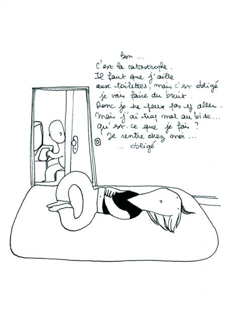 Aude Picault c’est « Idéal Standard », « Amalia » ou « Transat ». Mais avant ça, elle avait un autre style tout aussi particulier et pétillant. Elle raconte avec beaucoup d’humour ces doutes de femmes, sur son corps, son attitude envers les mecs, des copines, des meufs que l’on déteste, au boulot, pour manger… Qui ne pourrait pas se reconnaître dans ces récits? Le besoin de conformisme social concerne tout le monde. On veut être lisse pour être dans un tout et à la fois montrer sa singularité. D’un trait noir sans autre fioriture de couleurs ou de détails, elle se dévoile. Les pages se tournent simplement avec des rires qui s’échappent. Alors attention dans le métro, on risque de voir ainsi du potentiel danger. L’ordinaire peut nous divertir et non surprendre. Tous les quotidiens peuvent être source de drôlerie si on s’y penche. Déjà ici, on sent le potentiel de la bédéaste qui se confirmera plus tard et on continuera à suivre cette artiste de talent.