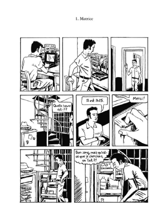 L’OuBaPo (Ouvroir de Bande dessinée Potentielle) propose de voir la bande dessinée autrement. Il faut dépasser les cadres pré-établis qui parfois empêchent de voir d’autres possibilités. Un principe inspiré de Raymond Queneau avec ses « Exercices de style ». Matt Madden décide de relever un défi dans cette optique. Il prend une situation et l’a décline de 98 façons différentes. Le choix d’inventivité révèle des grandes surprises. Pour y arriver, il va puiser dans les maîtres du comics américain, dans le cinéma américain, les comics d’horreur et même dans la ligne claire. Même s’il n’y a aucune surprise dans ce qui va arriver, on se met à réfléchir. Serions-nous capable d’arriver à alterner les propositions? Est-ce que l’on pourrait puiser autant dans notre imaginaire? On ne reste pas indifférent face à cette proposition.