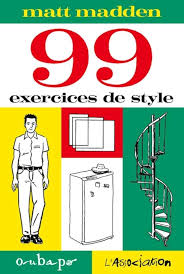 Se référant explicitement aux célèbres Exercices de style de Raymond Queneau (Gallimard, 1947) dans lesquels l’écrivain proposait 99 variation stylistiques à partir de la même scène, Matt Madden a décidé de tenter la même expérience avec le langage de la bande dessinée. Ayant présenté les planches sur son site internet dès 1999, l’auteur a mis six ans pour mener son projet à bien.