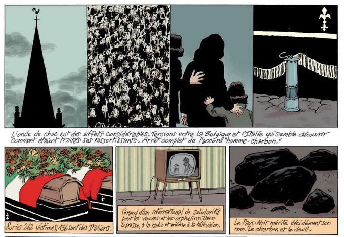 Dans ce site, on souhaite garder la mémoire. « Un morceau d’Italie à Marcinelle. Comme pour fixer le souvenir, qu’il ne s’envole pas. Le charbon noir, le marbre blanc… La mémoire des ouvriers est prise en compte. Nous avons un musée de l’Industrie et parfois d’anciens mineurs viennent témoigner. Une histoire qui mérite d’être cultivée pour ne jamais oublié les choix du passé et l’impact sur une société. « 2007. Le musée du verre vient rejoindre le site. Le charbon, le fer, le verre, la trilogie qui fit la gloire du Pays Noir réunie en un seul lieu » (p. 45). La démarche attire des visiteurs du monde entier. La consécration se fait aussi par l’inscription au patrimoine mondial de l’Unesco et le label du patrimoine européen. Pour clôturer la bande dessinée, on trouve un dossier pédagogique avec des photos et des témoignages. Rien de tel pour ancrer d’autant plus le récit.