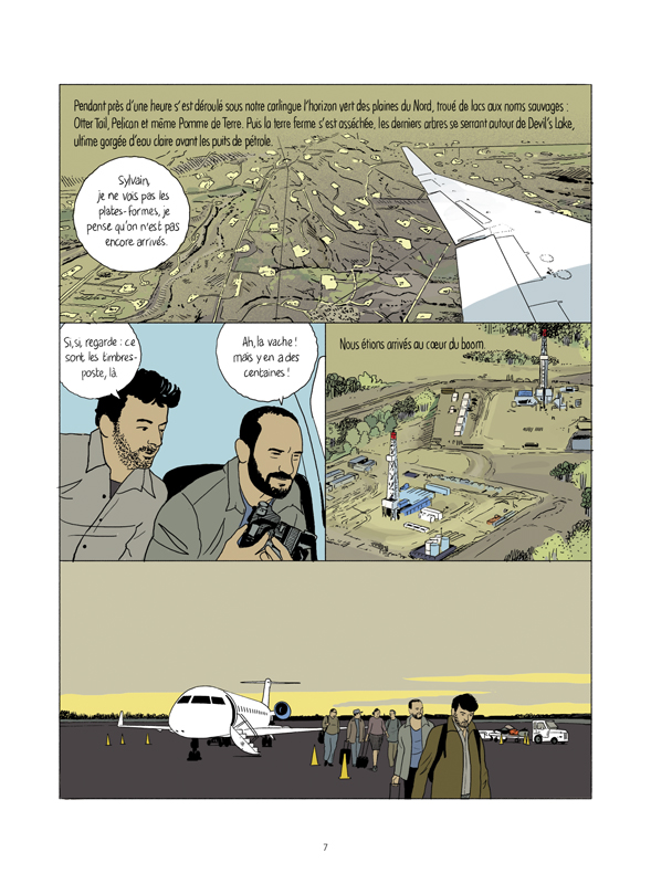 On est assez captivé par l’ensemble de la démarche en France et aux Etats-Unis. Comme on annonce la fin prochaine des réserves de pétrole, il est nécessaire de trouver des alternatives. Par conséquent, plus d’une entreprise se lance dans la recherche et développement pour faire du fracking. Il y un peu d’évolution jusqu’au moment où le gouvernement finance les innovations. Quand l’argent ne coule plus à flot, seules les grandes entreprises gardent un service de recherche. En parallèle, des particuliers investissent dans les techniques et les sites. Le savoir-faire s’affine et des brevets sont déposés. La technique évolue assez peu par contre les explorations se répandent. Les conséquences néfastes sont très vite identifiés avec la pollution des sols, des eaux et de l’air. Ni les experts des entreprises ni du gouvernements ne trouvent des choses. Puis des études plus poussées permettent de trouver des polluants issus directement des puisements. Aucune action n’est mise en place pour limiter les dégâts. Par contre, il est conseillé de ne pas boire l’eau du robinet et qu’il faut éteindre ces appareils électrodomestiques pendant sa douche. Ce n’est pas négligeable. La matière demande de l’eau et des produits toxiques. Quand le sujet arrive en France pour toujours des alternatives au pétrole et comme énergie verte, le sujet est étouffée. Les politiques font tout pour que les médias ne s’approprient pas la problématique. A nouveau les opposants sont malmenés et considérés comme des rebelles nuisant à la réussite de la nation. Qu’importe si ce n’est qu’une toute petite partie de la population qui va en profiter et que beaucoup vont gagner beaucoup d’argent. Tout ça est très choquant et déprimant. Heureusement qu’il y a des bédéastes audacieux qui utilise leur médium pour partager leur travail et leur inquiétude. Impossible de ne pas avoir envie de voir ou revoir « Gasland ».