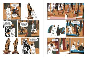 Grâce à ce procès qui est une référence en histoire de l’art, Arnaud Nebbache en profite pour retranscrire l’état d’esprit d’une époque. En plus, on découvre le passé de Constantin Brancusi avec ces débuts aux côtés de Rodin et son évolution dans ces pratiques. Il veut tout maîtriser pour garder le contrôle et réaliser ce qu’il imagine. Dans son entourage, on rencontre des créatifs de référence avec Marcel Duchamp, Alexander Calder ou Jean Prouvé. Le graphisme joue principalement avec des mises en couleurs. Pas de tracée noir autour des personnages, des objets ou des cases. Ce n’est nullement nécessaire. Par contre, il y a eu des soucis lors de l’impression. Une page a été imprimé deux fois et en décalé. Et une autre, la page a été pliée ce qui nuit à la lecture. Ce contre-temps nuit au confort de l’aventure. Néanmoins, on apprécie le travail effectué pour parler d’un artiste talentueux, passionné et curieux.