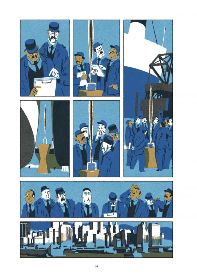 Grâce à ce procès qui est une référence en histoire de l’art, Arnaud Nebbache en profite pour retranscrire l’état d’esprit d’une époque. En plus, on découvre le passé de Constantin Brancusi avec ces débuts aux côtés de Rodin et son évolution dans ces pratiques. Il veut tout maîtriser pour garder le contrôle et réaliser ce qu’il imagine. Dans son entourage, on rencontre des créatifs de référence avec Marcel Duchamp, Alexander Calder ou Jean Prouvé. Le graphisme joue principalement avec des mises en couleurs. Pas de tracée noir autour des personnages, des objets ou des cases. Ce n’est nullement nécessaire. Par contre, il y a eu des soucis lors de l’impression. Une page a été imprimé deux fois et en décalé. Et une autre, la page a été pliée ce qui nuit à la lecture. Ce contre-temps nuit au confort de l’aventure. Néanmoins, on apprécie le travail effectué pour parler d’un artiste talentueux, passionné et curieux.