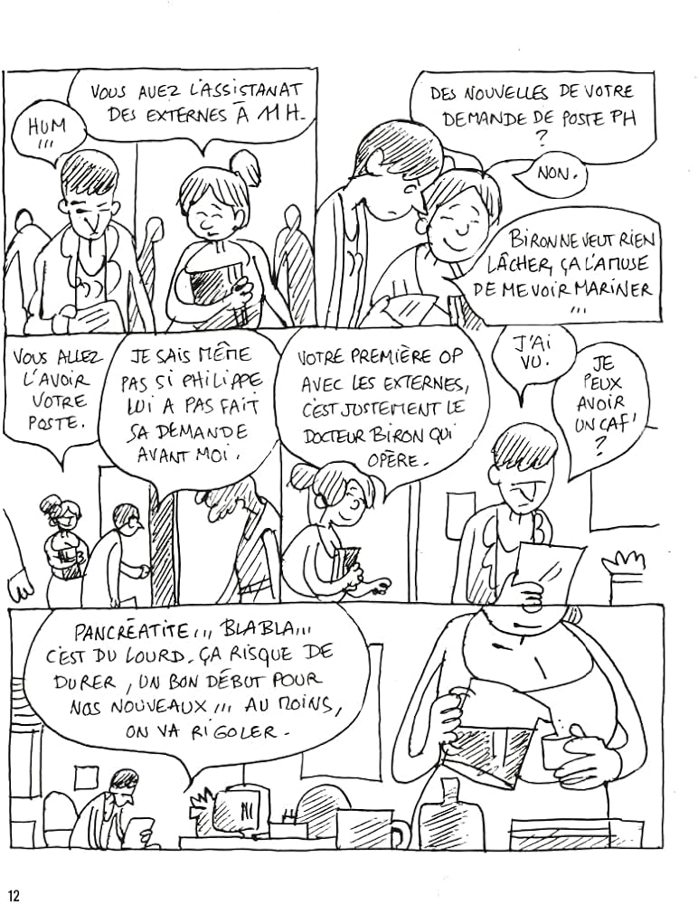 C’est toujours un plaisir de lire un livre de la collection Sociorama. Des sociologues de terrain collaborent avec des bédéastes pour retranscrire leur travail dans un nouveau médium. Leur travail n’est plus obscur pour le grand public. Il prend un nouvelle facette et nous montre à quelle point la sociologie est intéressante. Marion Mousse nous montre l’envers de l’univers hospitalier comme l’a analysé Emmanuelle Zolesio. En tant que client, on sent les tensions, les souffrances au travail et le rapport malveillant aux patients où l’empathie n’a pas sa place. Surtout si les individus ne paient pas pour ça. On se concentre d’une part sur les nouveaux arrivants. Et sur une cheffe qui veut posséder un poste fixe, elle doit aussi lutter. Blagues misogynes, propos sexistes, attitudes grossières… tout y passe. Même les dessins dans les salles communes sont salaces avec des femmes soumises à ces messieurs. Alors il faut de la volonté, du sang-froid et de la détermination à revendre.