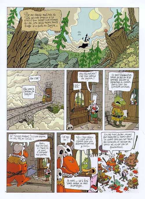 On se laisse porter par toute l’histoire de la première à la dernière page. Et tout ça en 32 pages et pas le 48CC. Tout est très carré et maîtrisé. Il faut dire qu’il y a des pros derrière avec Manu Larcenet, Joann Sfar et Lewis Trondheim. Ils sont habitués à tous les types de format et d’écriture. La quantité ne fait pas la qualité comme ce tome le prouve. Il y a les personnages récurrents de Donjon avec un lot de rebondissements assez surprenants et amusants. Une série qui sait toujours prendre à rebours les lecteurs pour les amuser avec dérision, folie et absurdité.