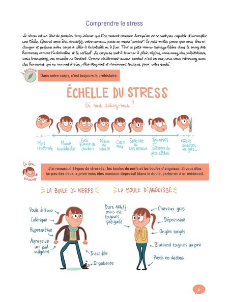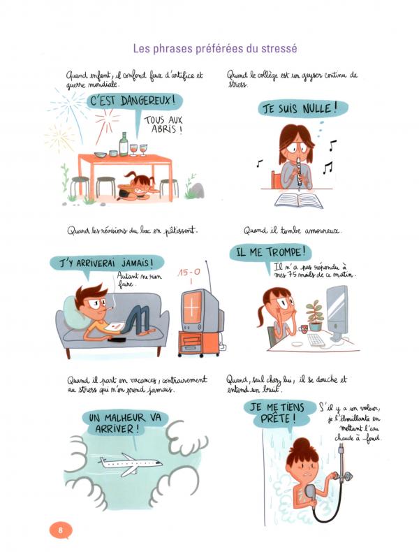 Première grosse surprise, les éditions First publient des bandes dessinées. Et seconde surprise, Leslie Plée, qui est plutôt dans les récits de vie personnels propose un ouvrage généraliste. Par contre elle maîtrise parfaitement les bases de la peur au quotidien. La frayeur est une compagne fidèle tous les jours. Pour éviter de s’imaginer inlassablement le pire, il faut prendre sur soi. Elle déploie un trésor de trucs et astuces pour gérer l’angoisse et le stress. D’abord il faut identifier ce qui provoque l’inquiétude. Puis essayer des activités qui peuvent aider comme le yoga, la sophrologie, le sport, les auto-massages… L’aspect psychologique n’est pas à mettre de côté et des professionnels sont là pour aider.