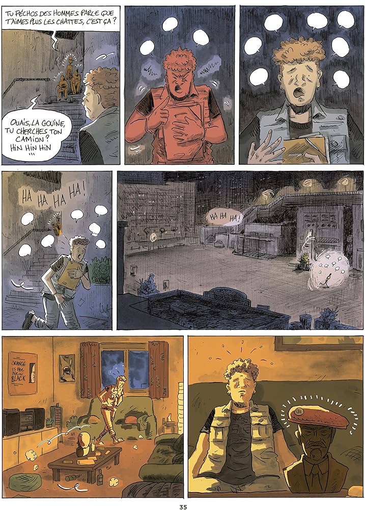Créer de la solidarité n’est pas toujours facile à entretenir, surtout quand les participantes sont dans la précarité. Swann Meralli, Clément Rizzo et Joël Costes ont décidé de proposer une histoire très complexe qui aborde des thèmes assez sensibles et tabous. Ils évoquent l’immigration, les quartiers sensibles, les sectes religieuses, l’abus de pouvoir politique, les manipulations, la violence, l’excision.. Pour permettre de faire un mélange cohérent de tout ça, on met une bonne dose d’amitié et d’amour. Les bédéastes arrivent à créer une implication assez globale. Bien qu’elle fasse 176 pages, on va forcément dans l’exagération, les clichés et quelques facilités. Le défi était de taille d’aborder les sectes, la politique et des enjeux économiques sans risquer de se perdre parfois. On a une de difficulté à croire que les hommes démotivent leurs épouses à soutenir leurs copines. Ils sont assez cruels et méprisants en leur disant qu’elles doivent leur être soumise et rester à leur place. Pourquoi agir comme un macho? Pour qu’ils puissent eux agir et trouver l’argent nécessaire pour qu’une habitante retrouve sa famille au bled. C’est dommage car cela sonne faux et amène à la séparation de cette association de femmes. Dès que les hommes mettent leur nez dans les aventures cela part en chaos. Les rebondissements ne manquent pas et le happy end est de mise. Donc on a des incendies, des bagarres dans la cité pour justifier une couverture presse. Et en face, une pièce de théâtre contemporain, élitiste, pour marquer la fracture sociale. La surprise repose sur la personne derrière tout ce complot et qui est dans un parti d’extrême droite. On vient à se demander ce que nous devrions tirer comme moral au final Et pour éviter tout amalgame religieux on distingue une secte d’une pratique religieuse rigoureuse. On reste sur sa faim comme un goût d’inachevé et d’inabouti.