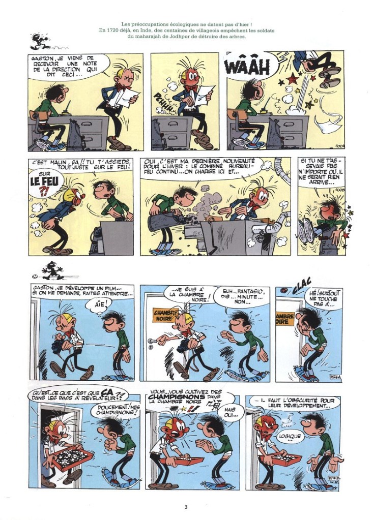L’écologie n’est ni un terme ni un sujet de préoccupation récent. Donc quoi de plus normal qu’André Franquin s’en préoccupe. Il diffuse des réflexions par le biais d’un de ces personnages : Gaston Lagaffe.