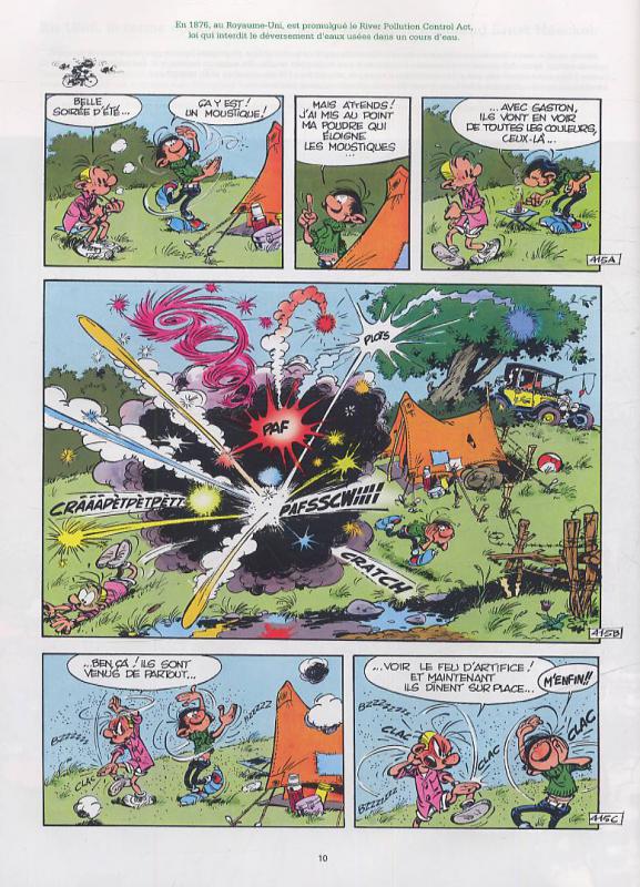 Pour faire pérenniser les rentrées d’argent malgré la mort d’André Franquin, Marsu Production propose des hors séries thématiques. Elle a sorti un tome consacré uniquement à l’écologie, un sujet dans l’air du temps. On sait que le bédéaste était concerné par ce thème comme on peut le lire dans les « Idées noires ». Mais dans Gaston Lagaffe c’est un peu moins flagrant. L’album ne convainc pas vraiment non plus. Le héros maladroit a tendance à fabriquer des machines et des objets ultra-polluants. Et en plus, il n’est pas très à l’écoute de ces collègues. C’est un personnage très narcissique et égocentrique. Il y a quelques éléments mignons comme des plantes qui recouvrent les parcmètres.