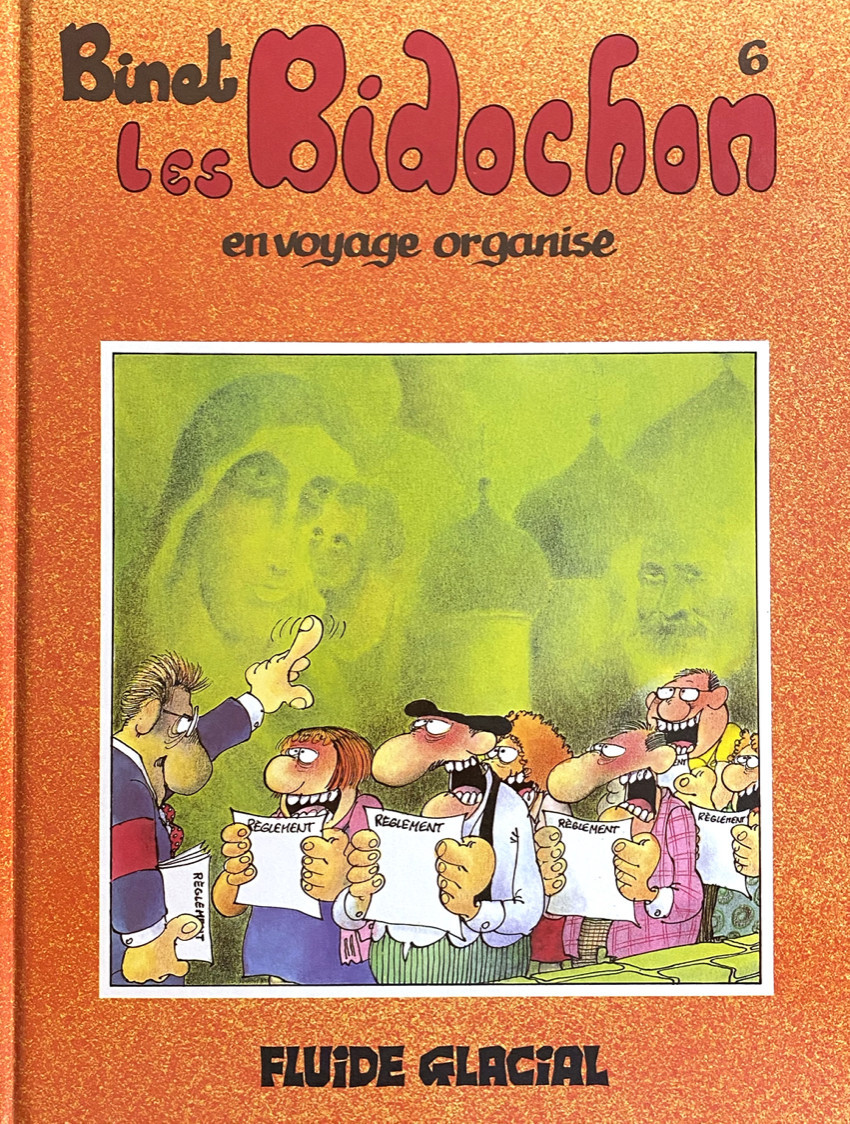 Ils forment un couple de Français si moyens, que chacun y reconnaît instantanément tous ses proches – à défaut de s’y reconnaître soi-même. Dans ce nouvel ouvrage, Binet nous raconte le voyage dans un pays de l’Est (non précisé), que les Bidochon ont gagné au Grand Concours des Raviolis Patzani. Avec une ironie impitoyable, Binet a relevé tous les tics, tous les travers qui rendent un groupe de Français à l’étranger bien plus insupportable qu’un groupe d’étrangers en France (excepté des supporters anglais). Rien n’échappe à l’humour féroce de l’auteur : l’éternel rigolard gros mangeur, l’intoxiqué du Guide Bleu, l’amateur d’objets « typiques », sans oublier le malheureux guide indigène chargé d’apporter la Culture à ces indécrottables Français, ni l’indispensable organisateur qui organise ce voyage organisé. Un ouvrage à lire obligatoirement avant de partir en voyage (organisé ou non).