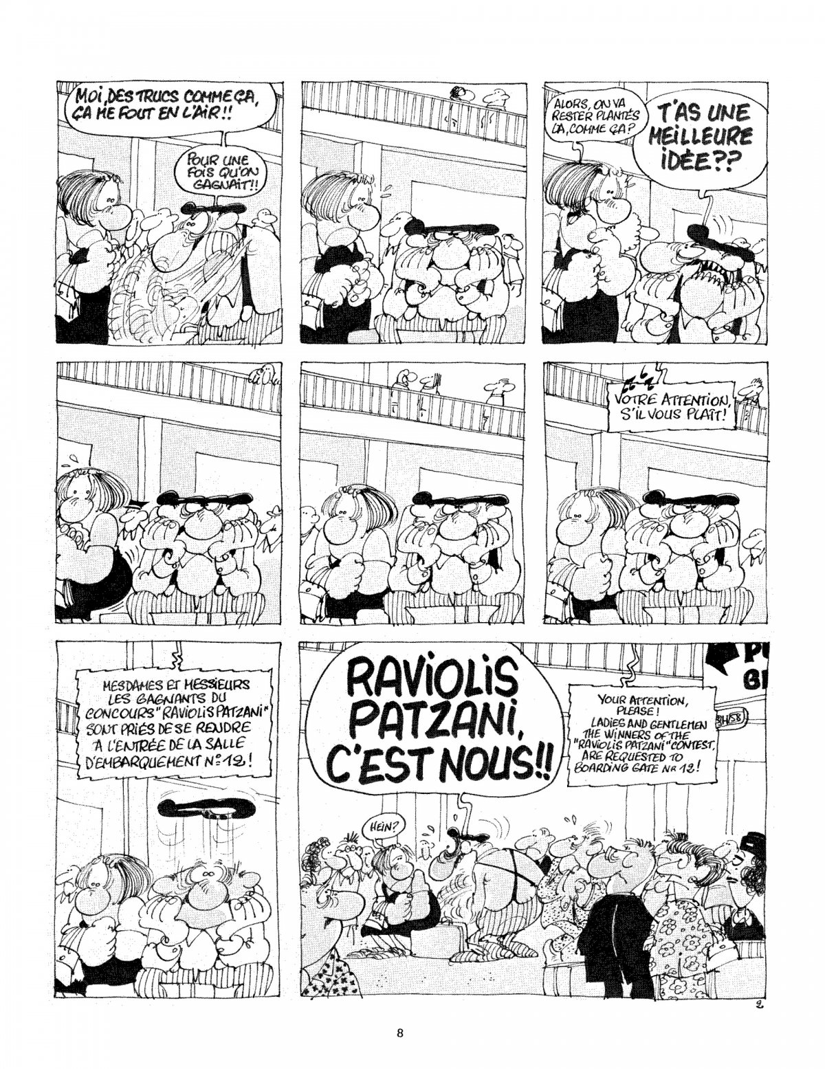Il n’a pas beaucoup de bédéastes qui arrivent à marquer la culture française. Binet a créé les Bidochons, censés représentés les français moyens. Le filou leur fait vivre des aventures plus incroyables les unes des autres. Dans ce tome, il les fait gagner un voyage organisé par la marque de raviolis Patzani. Par conséquent, on trouve pleins de couples à l’image de ce couple très singulier à la façon de parler très franchouillarde. Le coordinateur tente de les maîtriser d’une main de maître. Mais la beaufitude est de mise avec son lot de chansons paillardes, de propos racistes, de la sensation de supériorité blanche et française… sans omettre les prix pour les touristes excessifs ou les voleurs. L’humour répétitif est censé renforcé l’absurdité des situations. Impossible de ne pas voir le savoir-faire. Et Raymond en tient une couche en indélicatesse et négligence envers Raymonde. Il arrive de l’oublier et quand il pense à elle c’est surtout qu’elle possède la clé de la maison. L’amour doit prendre des chemins que beaucoup n’arrive pas à expliquer. La médiocrité a bien des ressorts qui fonctionne pour en faire du comique. Et qui correspond à merveille à l’état d’esprit de Fluide Glaciale qui perdure depuis 1975.