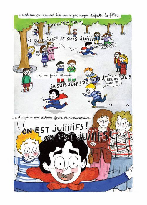 La fierté laisse alors place à la honte et à des questions sans fin : comment garder la face à l’école, puis au collège, face aux préjugés de ses camarades ? Peut-il vraiment être juif si sa mère ne l’est pas ? Pourquoi ses potes pensent que tous les juifs sont riches, alors que lui mange tous les soirs des raviolis Buitoni ?!!