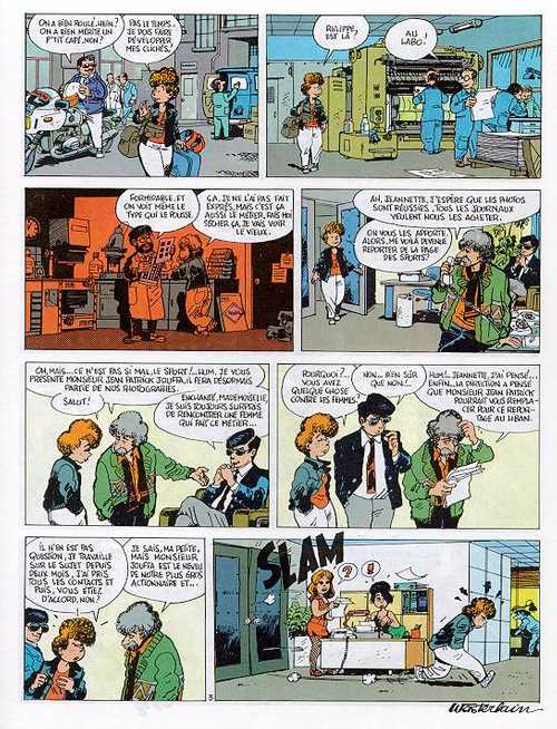 Après elle sait tout faire, filmer, prendre le son, photographier, conduire un avion, des motos, des voitures et tellement de type de véhicules. Le bédéaste nous rappelle que son sexe en fait une mauvaise conductrice. Heureusement qu’il y a toujours des hommes pour lui sauver la mise. Son courage a toujours des limites. Pour une fois, Jeannette montre son engagement « féministe » en repoussant les avances du fils du grand patron. Il croyait que quelques compliments suffiraient à la faire tomber sous son charme. Qu’importe, il en trouvera d’autres à mettre dans son lit. Le parvenu est totalement égocentrique, narcissique et très hautain. Un vrai cliché ambulant comme il y en a toujours autant. Par exemple, il y a une légère critique que Paris Dakar détruit des zones de culture agricole en Afrique subsaharien. Par contre, le fait que des véhicules soient abandonnés est une ressource pour les autochtones. N’est-ce pas abusé? Les gentils blancs qui s’amusent dans le pays des noirs et qui laissent déchets et cadavres.