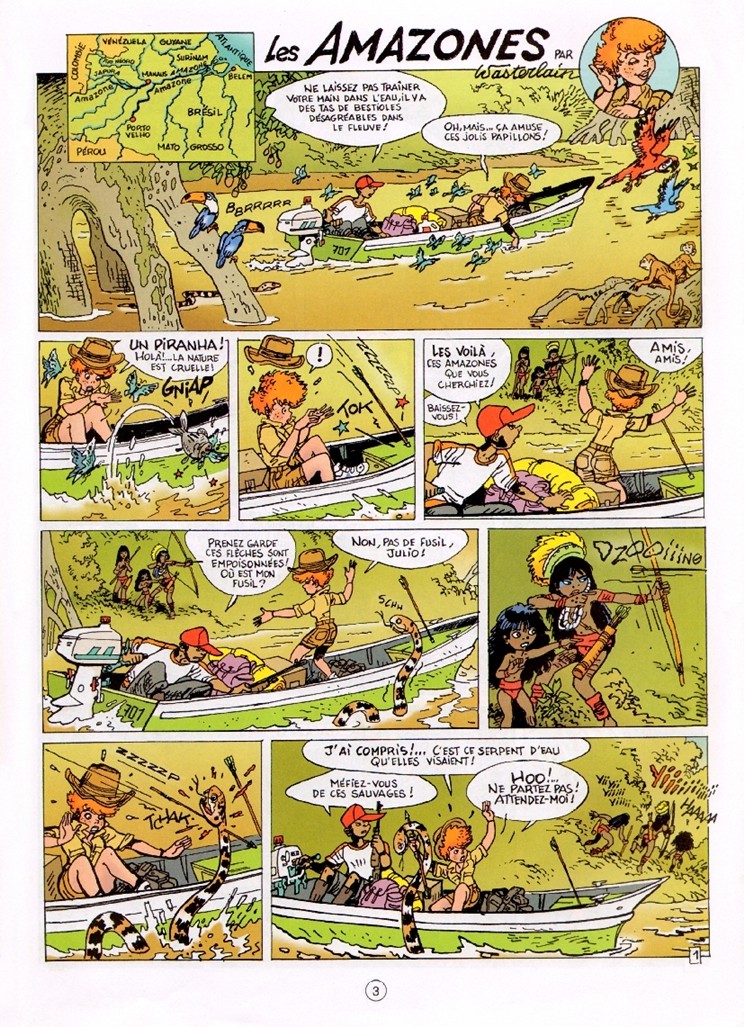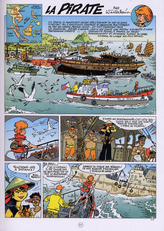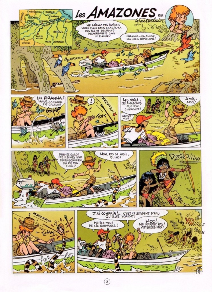 Marc Wasterlain a répondu à une demande de Thierry Tinlot, alors rédacteur en chef de « Spirou ». Il lui a proposé d’aborder le thème des « femmes dans le monde » à travers des histoires courtes. Le bédéaste s’applique à cela grâce à son héroïne reporter et ce dans deux tomes. Bien que l’on soit ravi de voir une héroïne en tête d’une série, on est toujours navré de sa représentation car elle est toujours hypersexualisée. Nous restons dans des clichés assez misogynes. Les clichés vont bon train sur l’ensemble des communautés du monde. Cela se combine à merveille avec des raccourcis anthropologiques et sociologiques. C’est assez lassant. Mais en 8 pages, c’est difficile de faire quelque chose de cohérent et fin. On applaudit l’effort malgré la contrainte.