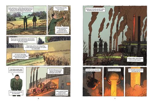 On est choqué par les résultats. C’est pour ça que l’on reste un peu sur sa faim à la fin de l’album. Tout va trop vite. Il est difficile de pouvoir estimer une échelle de temps. Tout semble fluide et immédiat. Il y aurait peu d’opposant, pas de pression, pas vraiment de tabou. Le maire est peu présent. A croire, que ce genre de problématique ne le concerne pas. On aurait voulu en savoir plus sur les recherches, avoir les résultats, avoir des chiffres sur le nombre de refus de l’usine ou autres organisations. C’est dommage qu’il n’y a pas d’inscription dans un temps long. Au final, on est pris dans cette aventure qui prend forme grâce à la participation citoyenne et la recherche scientifique.
