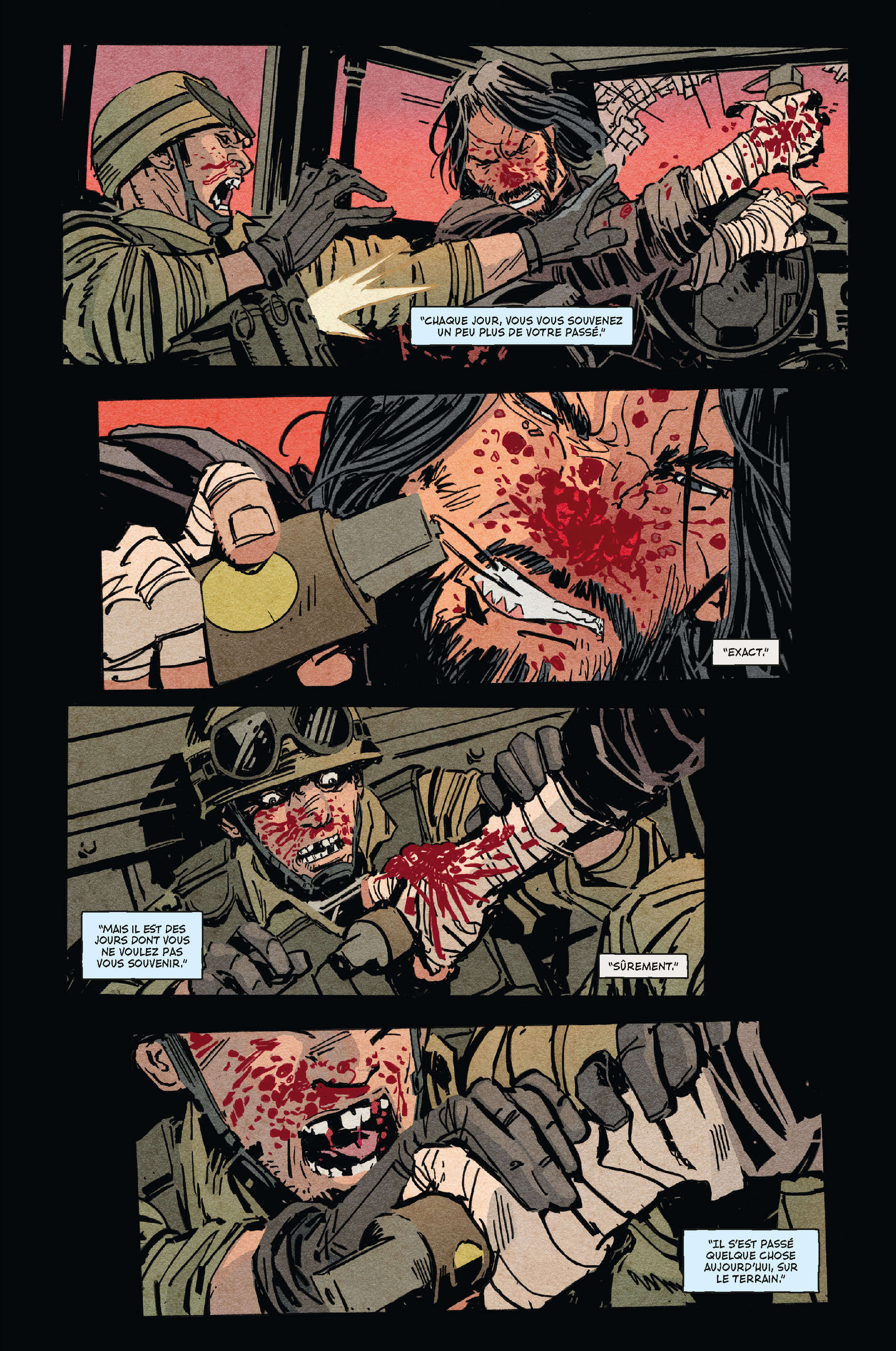 Quand on voit que Keanu Reeves est en en-tête, impossible de ne pas être intrigué. L’homme a plus d’une corde à son arc. Pour arriver à son projet, il s’entoure des meilleurs dans le milieu comme Matt Kindt. Le graphisme de Ron Garney est très immersif. On y voit des références à « Sin City » avec les jeux de noirs. Impossible de ne pas être convaincu par cette série qui donne envie de se dévorer. Même le choix du titre avec un clin d’oeil à « Berserk ». On retrouve un homme face à son destin qui affronte inlassablement la mort sans pouvoir vraiment périr. En couverture, on est face à Unute, un gars d’une grande force qui semble partagé entre la colère et le désespoir. Il est en bien mauvais état avec des flèches, un couteau et des balles dans le corps. Comment fait-il pour avancer encore?