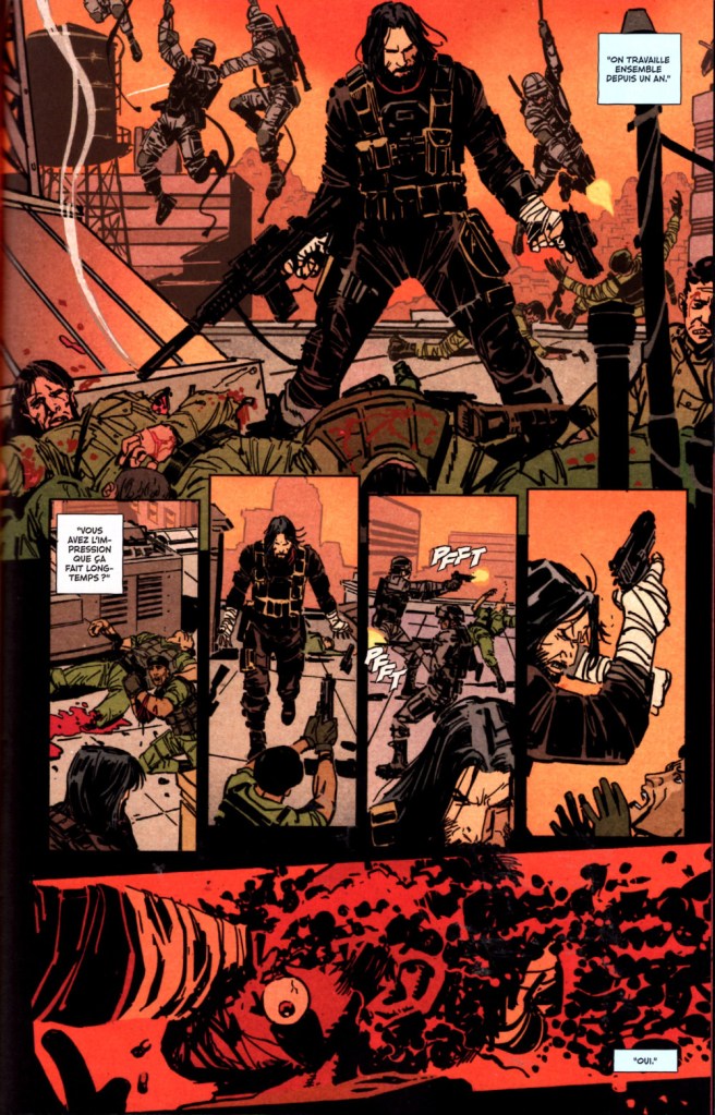 C’est là tout le mystère. Une institution privée l’étudie pour comprendre son immortalité. Quel état ne rêve pas d’avoir une armée de soldats qui ne peuvent pas mourir? Celui qui l’a possède pourrait devenir le roi des guerres. Et en plus, il pourrait la vendre au plus offrant dans des conflits spécifiques dans des dictatures. Mais quel éthique la dedans? Et surtout comment arriver à vivre longtemps avec tellement de sang sur les mains? Unute partage son passé de sa naissance jusqu’à ce jour. John Wick n’est pas très loin, sans l’épouse et le chien. La violence est omniprésente avec de l’hémoglobine à foison. Attention aux âmes sensibles car les cadavres s’empilent un peu partout. Sinon on passe un très bon moment de lecture comme rarement. Et on veut savoir si enfin, il pourra mourir comme tout à chacun.