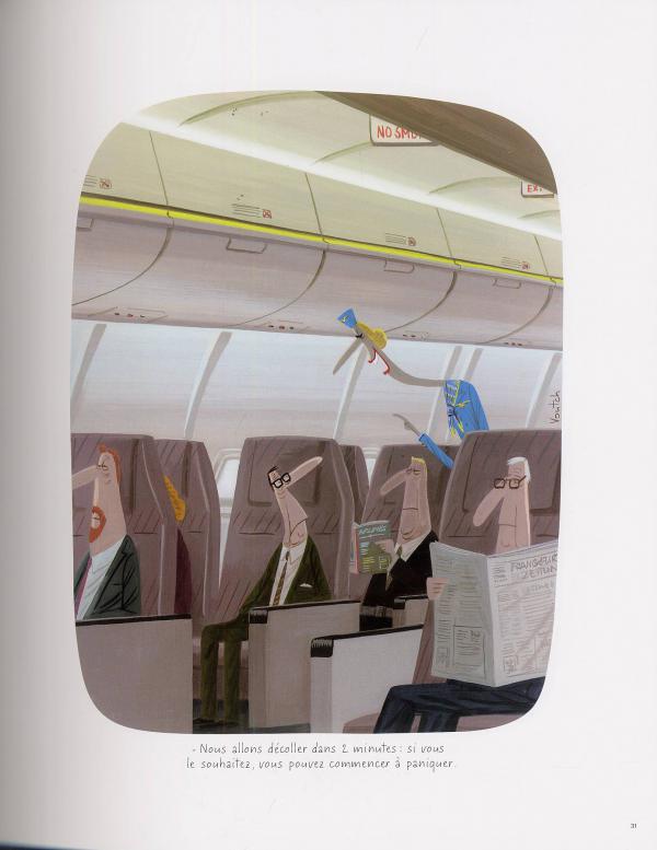 Lire un album de Voutch est une garantie de retrouver le sourire. Il sait trouver les mots et les situations pour se moquer avec élégance et sarcasme de la société. On retrouve souvent les familles bourgeoises et aristocrates qui font des mariages de raison et surtout de fortune. Ils ne manquent pas vraiment d’attachement sincère à leur binôme de nom de famille. Par conséquent, on peut s’imaginer sans grande peine les discussions improbables qui peuvent s’y dérouler. Les femmes ont bien souvent un mauvais rôle dans l’histoire et sont laissées pour compte pour des plus jeunes. L’absurde est au rendez-vous. Mais bien entendu, on trouve d’autres sujets comme l’entreprise. Là aussi c’est un royaume d’inspiration avec le patron ou les dirigeants qui virent sans scrupule, restent obséder par les chiffres ou qui aiment humilier les subalternes. Le dessinateur s’amuse avec les mots et arrivent toujours à faire mouche. On s’étonne que des mots importants soient soulignés. Est-ce pour indiquer ce qui donne le plus de sens? Pour le côté dessin, on voit le savoir faire de la maîtrise de la gouache. Les personnages très reconnaissables sont assez longilignes avec de gros et long nez, imparfaits et surtout dépités car résignés. Il a une touche bien à lui. Par contre, le format est très grand, plus qu’un format standard de bd. On n’en voit pas l’utilité pour la lecture. Est-ce pour justifier un prix plus élever? et inciter les gens à ne pas ranger l’ouvrage dans le rayon bd mais beaux livres? Malgré cela, on passe un bon moment. L’envie de prendre en photo des pages pour les envoyer à nos proches est très prégnante. On se reconnaît dans plus d’une situation.