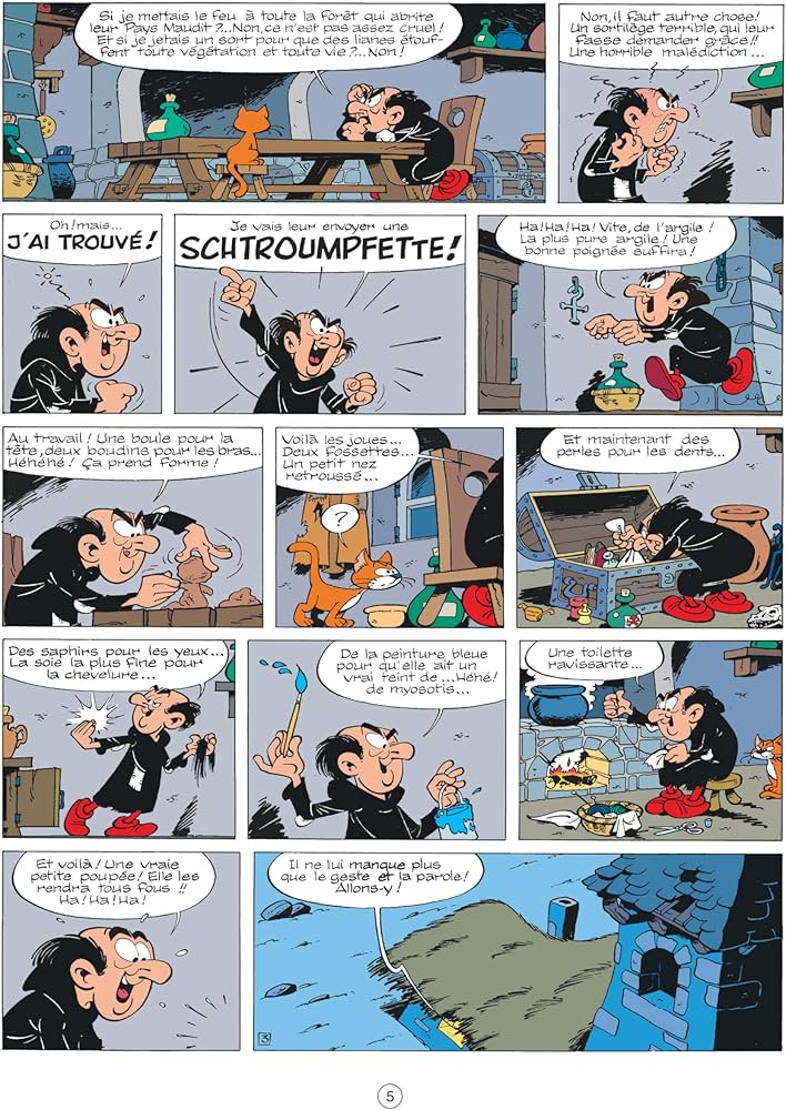 Qui ne connaît les Schtroumpfs ? Ces gentils lutins bleus à gros bonnet blanc se ressemblent tous, même s’ils ont chacun leur caractère, et parlent une curieuse langue dans laquelle la plupart des mots sont remplacés par « schtroumpf » ou « schtroumpfer ». Sous l’autorité débonnaire du grand Schtroumpf, ce sympathique petit peuple organise sa vie et lutte contre l’abominable sorcier Gargamel, qui ne rêve que de les détruire. Une adorable fantaisie qui séduira les plus petits et distraira leurs aînés.