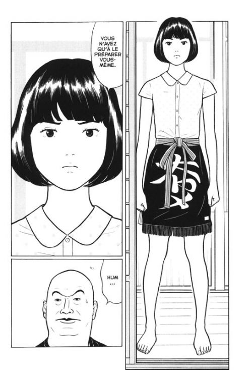 Minetaro Mochizuki interroge la relation aux autres que cela soit dans une famille, dans le cadre amicale et professionnel. Des tensions émergent avec Ritsu qui se comporte comme une gamine de 14 ans. Elle croit qu’il va la virer de la maison et qui ne l’aime pas . Et tout ça sans qu’il puisse échanger vraiment. Les mots ne sont pas de mise ici non plus. Le mangaka choisit de montrer la communication à travers son graphisme très réaliste et très pure ainsi que le découpage singulier. Beaucoup de cases proposent un regard photographique. Ce n’est pas toujours les corps avec les visages qui sont importants comme dans les mangas classiques. Cela peut-être un geste lorsqu’on fait la cuisine, les mouvements d’une jupe dans un déplacement ou des mains posées sur les genoux. Et on voit aussi à travers les yeux d’un personnage qui va s’attarder sur des fesses ou une poitrine. On alterne des regards et des points de vue sur des détails. Le lecteur prend aussi le temps d’observer. Sans oublier que le dessin permet aussi de souligner l’étrangeté. Tous les enfants ont des physiques assez ingrats en raccord avec leur personnalité. On n’a pas du tout envie de s’attacher à eux. Pourquoi Ritsu tient autant à ces orphelins? Ils lui rappellent sa solitude et sa différence par rapport à Yûko par exemple.