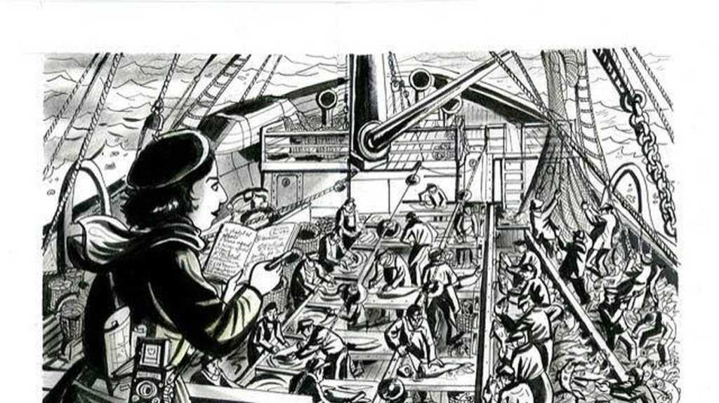 Après avoir rendu hommage à Olympe de Gouges, Kiki de Montparnasse, Josephine Baker et Alice Guy, Catel et Bocquet s’intéressent à Anita Conti. A nouveau, à travers un pavé, on découvre une femme au combien motivée et curieuse. Elle est une aventurière et de l’époque de Théodore Monod, Jacque-Yves Cousteau et Ella Maillart. Le scénariste ne rend pas totalement compte des problèmes qu’elle a pu rencontré. Une femme en mer, les clichés ne manquent pas. Toutefois, on assiste à l’ensemble de ces réussites qui lui ont demandé un investissement totale. Elle est allée dans les eaux de Terre-Neuve aux côtes mauritaniennes, de l’Adriatique à la mer de Barents. Peu de personnes peuvent se vanter d’avoir cette connaissance. Grâce à son savoir-faire, elle s’est toujours fait respecter à bord.