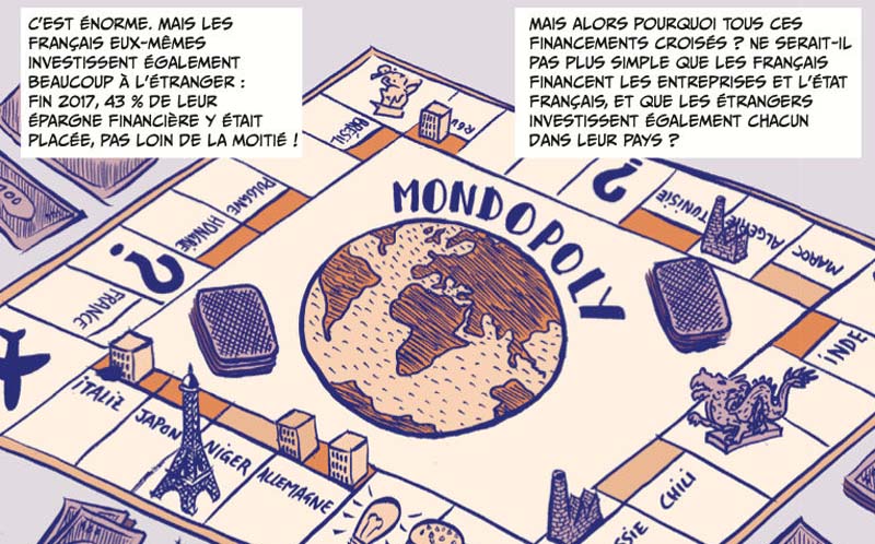 La structure de la bande dessinée est assez bien réussi. Des petits chapitres sur des thèmes très précis et des questions que l’on a déjà vu apparaître ici et là comme « Le « made in France » existe t’il vraiment? », « Les entreprises sont-elles toutes mondialisées? », « Comment la mondialisation est-elle devenue mondiale? », « La mondialisation favorise t’elle la croissance? », « La mondialisation améliore-t-elle le pouvoir d’achat des Français? »… Aucun doute que ces interrogations intéresseront les adeptes ou non de la finance? Même si les réponses ne sont pas toujours nets car il y a toujours de nombreux facteurs à prendre en compte, on comprend l’importance de la nuance. La finance n’est pas une science exacte. Et aussi l’influence des lois, des chutes des banques et le rôle des organismes qui surveillent. L’aspect des lobbys qui influencent les réglementations n’a pas été abordé. Contrairement, aux rôles des citoyens qui auraient bloqué des réunions internationales au sommet pour éviter de faire gagner de l’argent toujours aux mêmes.