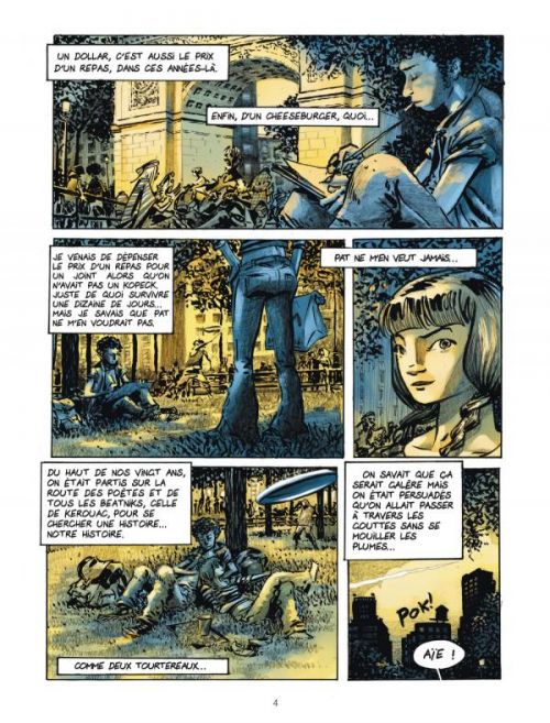 Eric Cartier nous livre une partie de sa vie privée. En 1978, avec son amoureuse, ils partent pour New-York en rêvant de liberté. Leur but est de traverser le pays en stop pour se rendre à San Francisco. L’imaginaire avec des hippies sympathiques et détendues est très fort. Mais la réalité des Etat-Unis est tout autre. la déception se trouve vraiment au rendez-vous. Les deux amoureux vivent des aventures hautes en couleurs. Ainsi ils rencontres des gens très généreux à leur offrir une vraie chambre, à manger et même des denrées. Et surtout des personnes brisées par la vie qui se droguent, boivent et sont violents. Sans oublier, les pervers, les vicieux, les agresseurs et les violeurs. La possession du corps de la femme permet à ces messieurs de se donner une stature viriliste.